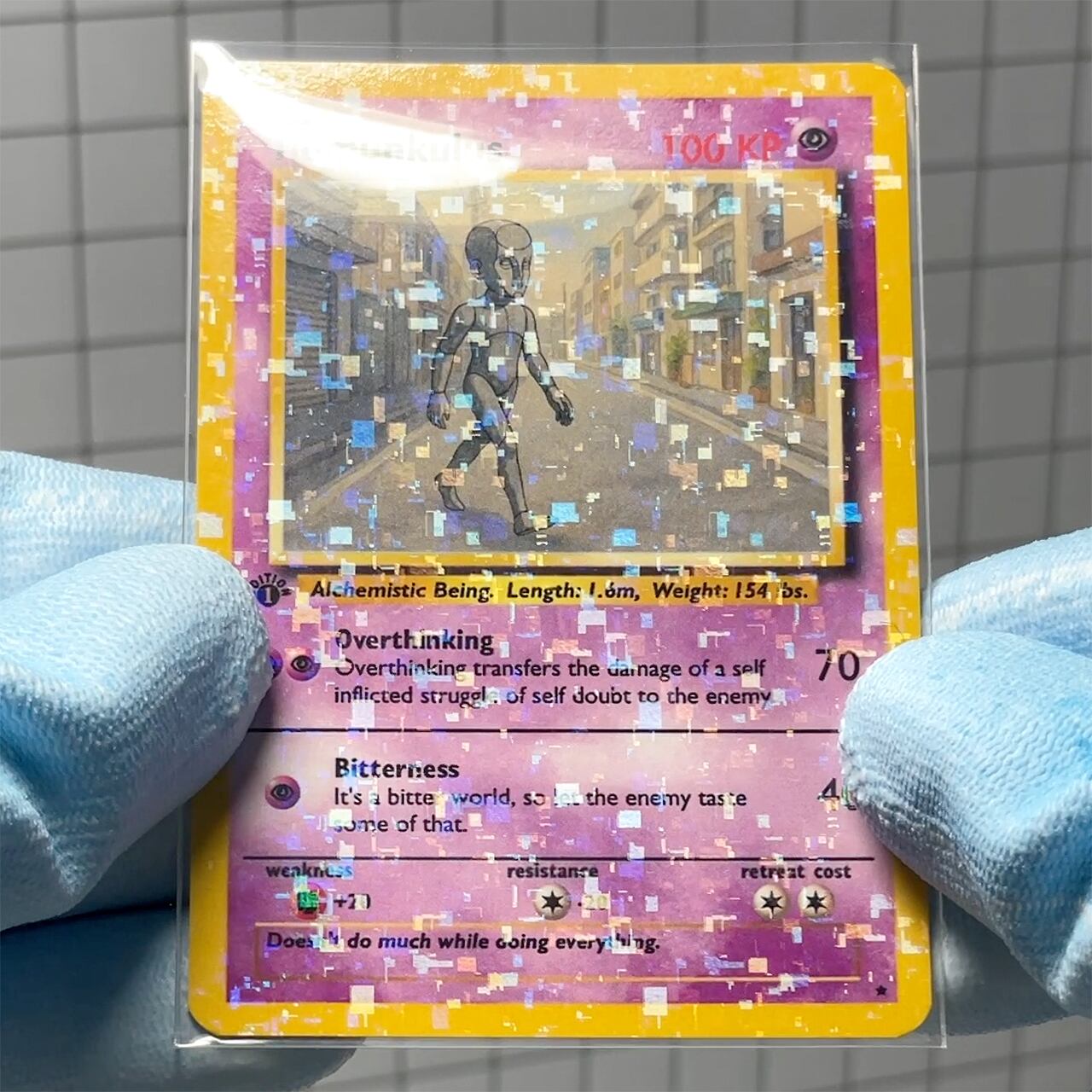 The card is produced with a pixelated holographic finish on both sides.