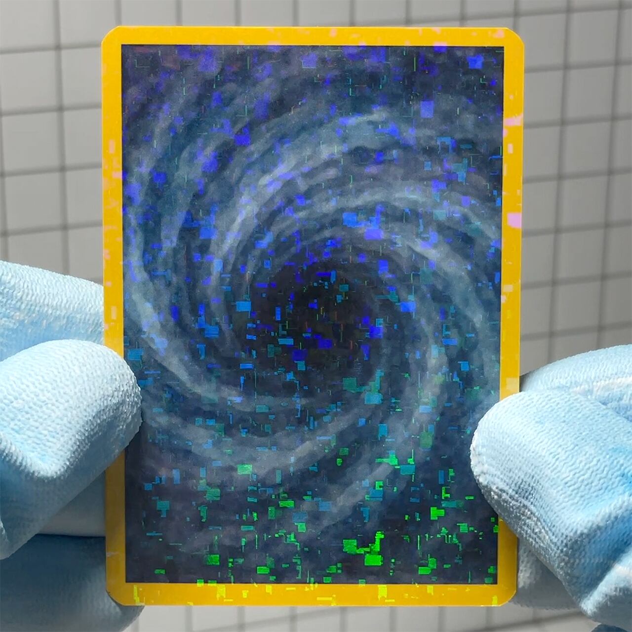 カードは両面にピクセル状のホログラフィック加工が施されています。
